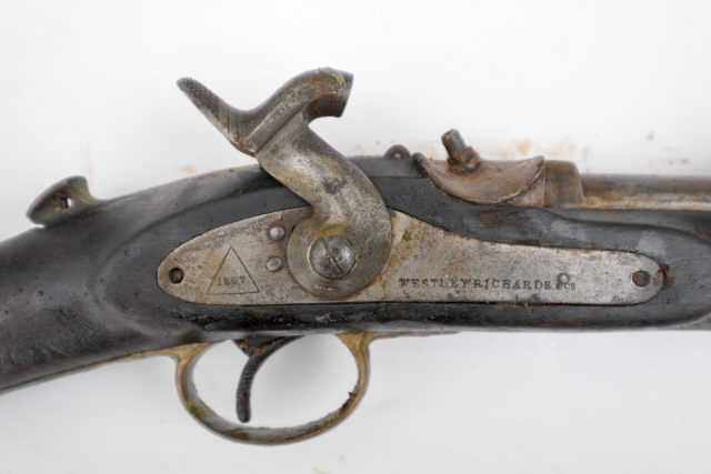 Descrição Carabina de cavalaria, Westley Richards, Modelo (m/) 1867, calibre 11mm, arma de fogo de retorcarga, de tiro simples.