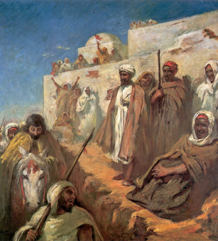 Descrição Representa o Infante Santo, feito prisioneiro, deslocando-se de Tanger para Arzila, escarnecido pela população moura.
