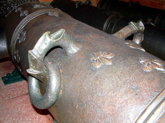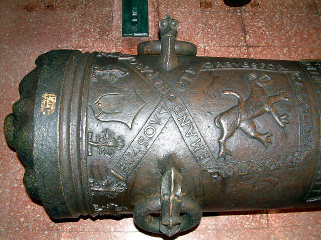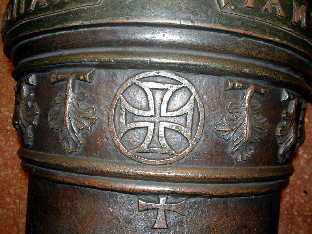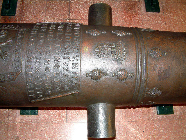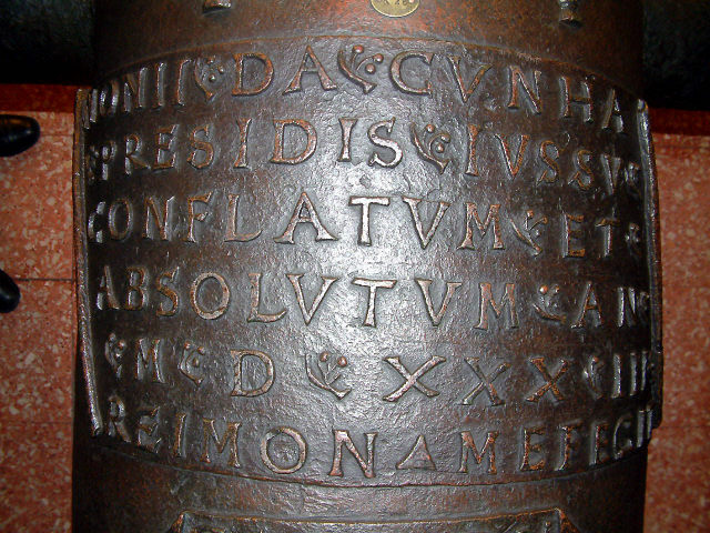 Descrição Boca de fogo, em bronze, onde se distinguem o reforço e a bolada. No primeiro, onde se encontram os munhões, estão quatro esferas armilares e a inscrição: " NONII DA CVNHA PRESIDIS JVSSV CONFLATUM ET ABSOLVTVM AN MDXXXIII REIMON ME FECIT ". Em volta da figura de um tigre, que deu o nome à peça, tem a inscrição: " EV SOV O TIGRE ESFORÇADO QVE POR DO ME MANDON PASO ". Tem ainda no reforço dois olhais para arganeos, com carrancas. O liso do fogão é ornamentado com folhagem; o ouvido é rodeado por um cassolete em forma de escudo. O cascavel tem a forma de uma grotesca carranca. No liso da joia tem a inscrição: " REGIS LVSITANI FAMVLVS ". No colarinho vê-se a Cruz de Cristo e há ornamentações de folhas de acanto; na bolada, junto ao colarinho outra Cruz de Cristo; mais abaixo, três flores de liz, dois olhais para arganeos, esfera armilar e flores de acanto.