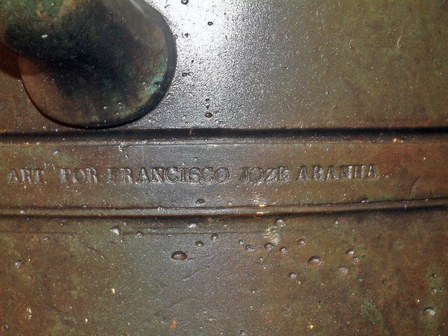 Autorias Arsenal Real do Exército [Fabricante]; Base Francisco José Aranha [Fundidor]; Peça