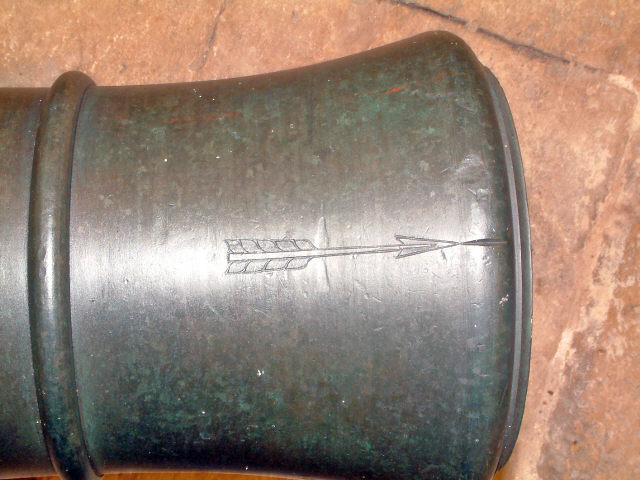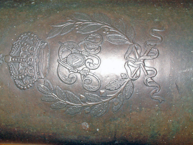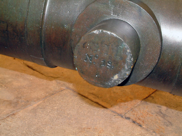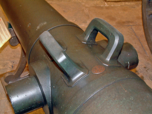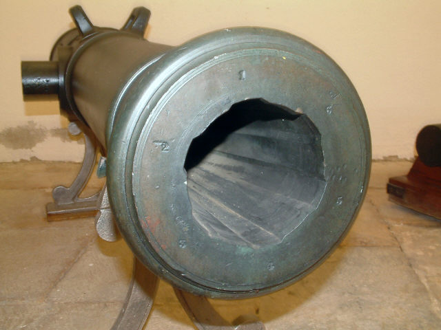 Descrição Boca de fogo, de 12,1cm de calibre. No 2º reforço tem munhões e asas facetadas. Na bolada tem uma seta apontando a ranhura de mira. No 1º reforço tem a cifra real de D.Pedro V, coroada. A culatra tem, no lado direito, um orifício para a alça. Na faixa alta da culatra tem " ARSENAL DO EXERCITO LISBOA ANNO DE 1854 ".O cascavel termina em botão esférico. No topo do munhão direito tem marcado " Nº 19 ", e no esquerdo " KIL. 606 ".