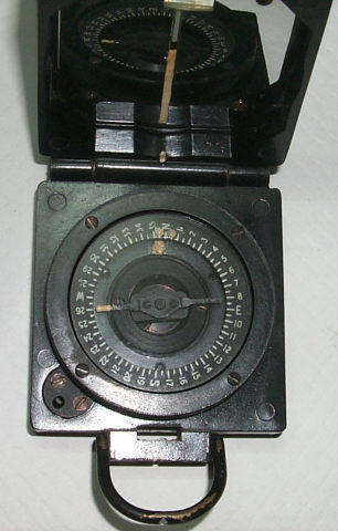 Descrição Bússola com caixa e tampa em plástico em forma de quadrado, fixa numa das extremidades por uma dobradiça que fecha em forma de caixa. A base comporta uma cápsula com tampa de vidro graduada reforçada com um aro de plástico aparafusado à mesma. Possuí agulha mágnética e uma seta indicando o Norte. A Tampa possuí um espelho recortado nos quatro cantos do quadrado e aparafusado. Possuí um aro de suspensão.