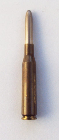 Descrição Cartucho desmilitarizado constituído por projectil e invólucro metálico de percussão central com a base em garganta.