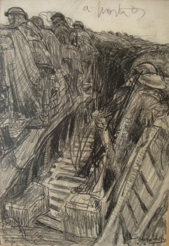 Inscrições 1917; a postos; Atenção/ a este otimo carvão original/ de Sousa Lopes as trincheiras/ na gerra [sic] titulo A Porta/ avaliado em 60.000$00; Atenção/ a este otimo/ carvão original/ de Sousa Lopes. As/ trincheiras na gerra [sic]/ titulo A Porta de/ José Maria R de Sampaio/ 1935, do, (Esrtoril); Fauquissart s.s. 1; 12-1-918/ 1ª linha - sobre a/ terra de ninguém./ Americo Olavo/ cap inf 2; Sousa Lopes; |  Imagens: 1 Participe Ajude-nos a completar a informação enviando-nos sugestões, perguntas ou os seus comentários |