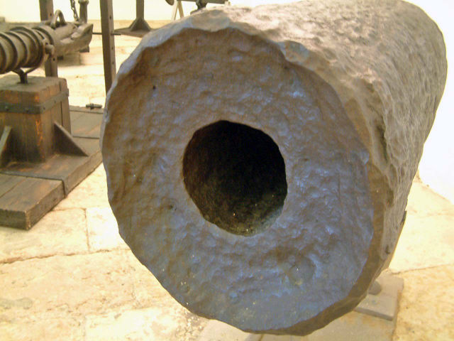 Descrição Boca de fogo de carregamento pela boca, 21cm de calibre e com o