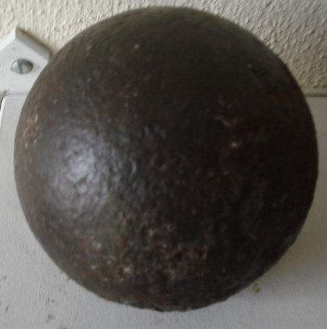 Pelouro de ferro fundido, sob a forma esférica, que se empregava em algumas peças de artilharia, dos séculos XVI a XVIII.